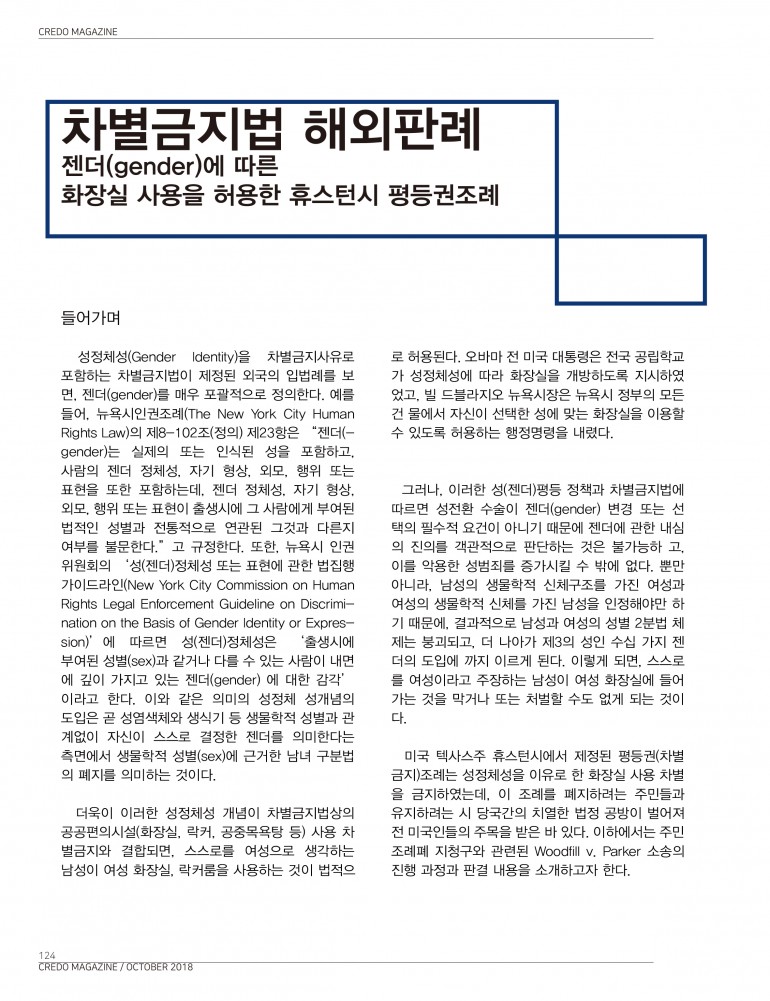젠더(gender)에 따른 화장실 사용을 허용한 휴스턴시 평등권조례