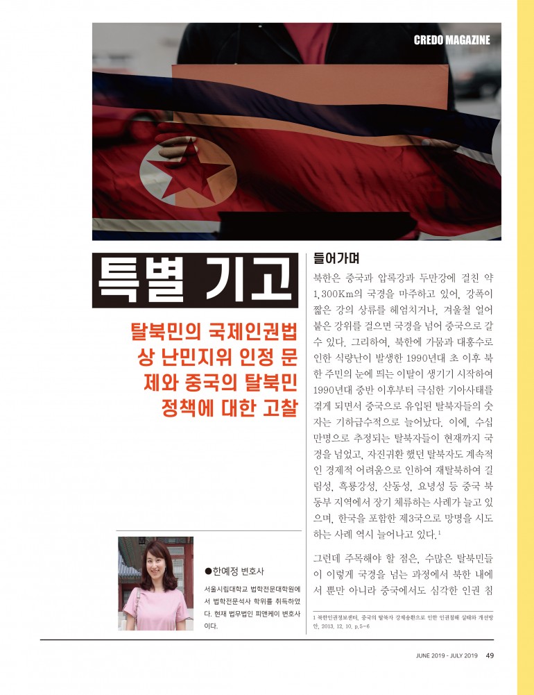 탈북민의 국제인권법상 난민지위 인정 문제와 중국의 탈북민 정책에 대한 고찰 > 북한인권