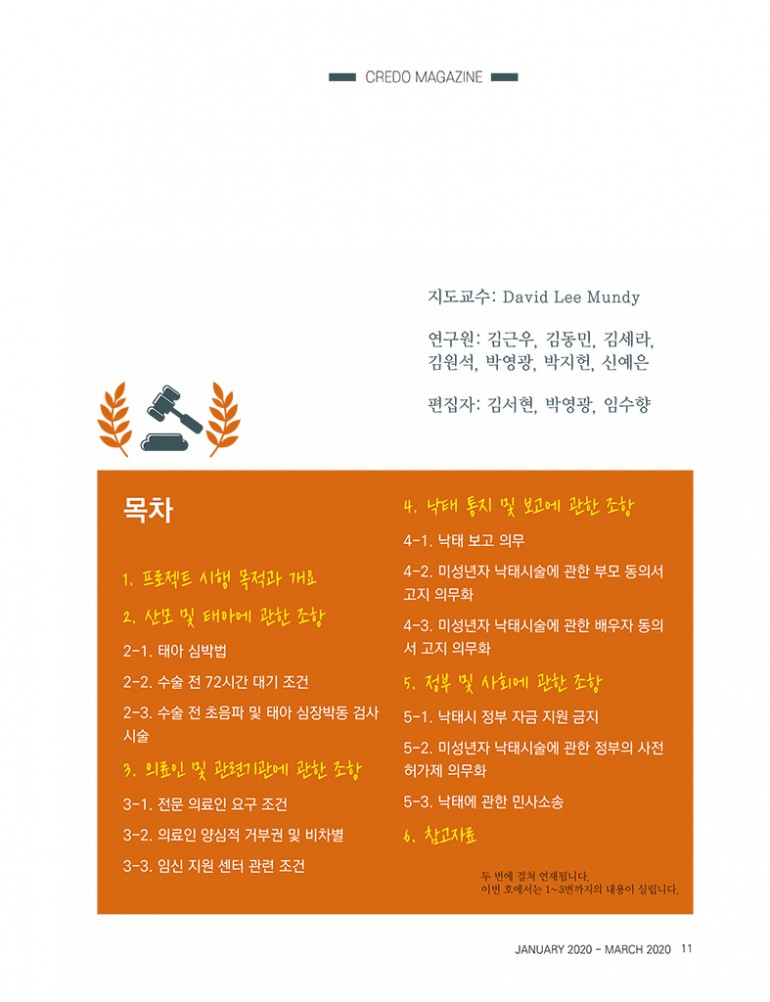 우리는 미국의 낙태법을 정리한 이 보고서가 한국의 입법자들에게 향후 낙태법 입법안을 제작하는 데에 도움이 되길 바라는 바다.