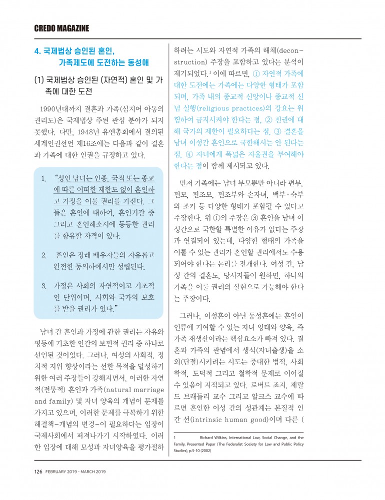 1. “성인 남녀는 인종, 국적 또는 종교에 따른 어떠한 제한도 없이 혼인하고 가정을 이룰 권리를 가진다. 그들은 혼인에 대하여, 혼인기간 중 그리고 혼인해소시에 동등한 권리를 향유할 자격이 있다.