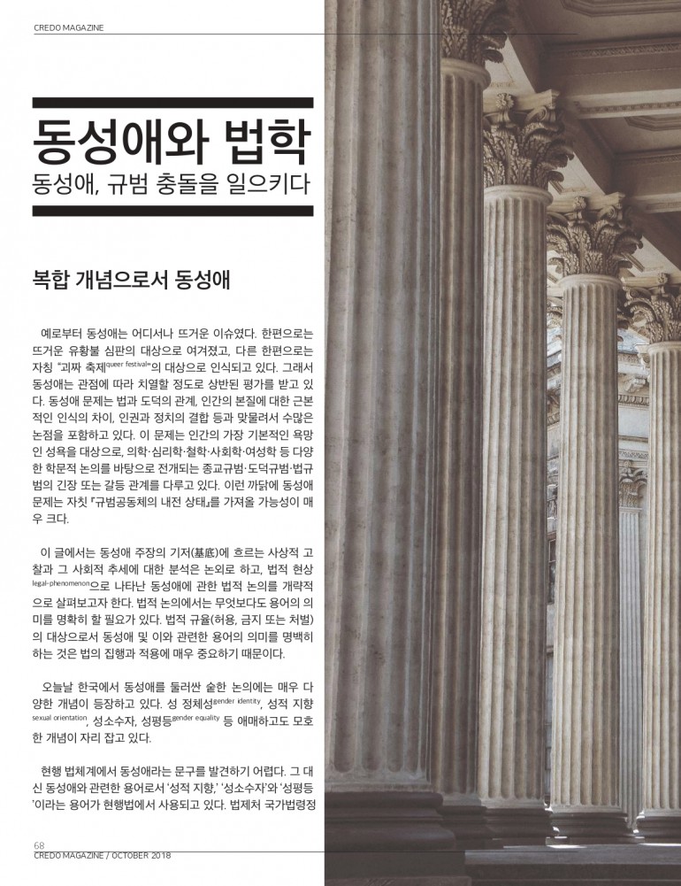 그래서 동성애는 관점에 따라 치열할 정도로 상반된 평가를 받고 있다. 동성애 문제는 법과 도덕의 관계, 인간의 본질에 대한 근본적인 인식의 차이, 인권과 정치의 결합 등과 맞물려서 수많은 논점을 포함하고 있다. 이 문제는 인간의 가장 기본적인 욕망인 성욕을 대상으로, 의학·심리학·철학·사회학·여성학 등 다양한 학문적 논의를 바탕으로 전개되는 종교규범·도덕규범·법규범의 긴장 또는 갈등 관계를 다루고 있다. 이런 까닭에 동성애 문제는 자칫 『규범공동체의 내전 상태』를 가져올 가능성이 매우 크다.