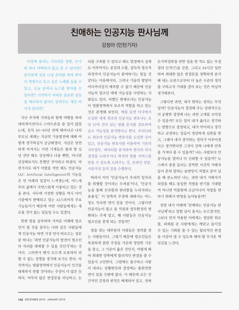 지난 추석에 가족들과 함께 여행을 하며 내비게이션이나 스마트폰을 쓸 일이 많았는데, 문득 50-60년 전에 태어나신 나의 부모님 세대는 지금의 기술발전에 대해 어떻게 생각하실지 궁금해졌다. 지금은 당연 하게 여겨지는 이런 기계들은 불과 몇 십 년 전만 해도 상상에나 나올 뻔한, 아니면 상상해보지도 못했던 것이라고 하셨다. 마찬가지로 내가 어렸을 적만 해도 인공지능 (AI: Artificial Intelligence)의 기능들 은 먼 미래의 일같이 느껴졌는데, 어느새 우리 삶에서 자연스럽게 이용되고 있는 것을 본다. 서두에 가정한 상황들 역시 이미 시중에서 판매되고 있는 AI스피커의 주요 기능들이기 때문에 어떤 사람들에게는 새로울 것이 없는 일들일 수도 있겠다.