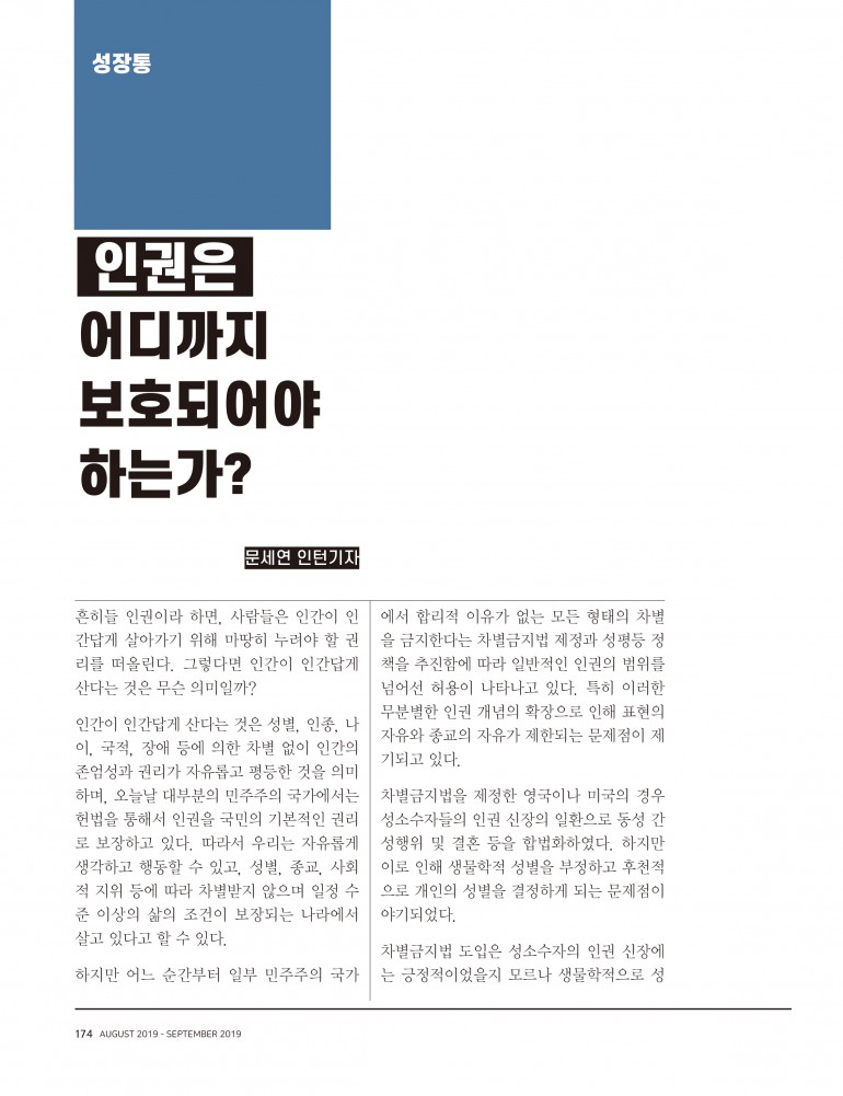흔히들 인권이라 하면, 사람들은 인간이 인간답게 살아가기 위해 마땅히 누려야 할 권리를 떠올린다. 그렇다면 인간이 인간답게 산다는 것은 무슨 의미일까?